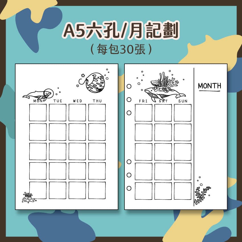 月計畫我們把原來的鯨魚款左頁和魟魚款右頁整併成一款,週記劃款則會加贈八張月記劃,也就是買一包週記劃直接是半年份足夠的用量!