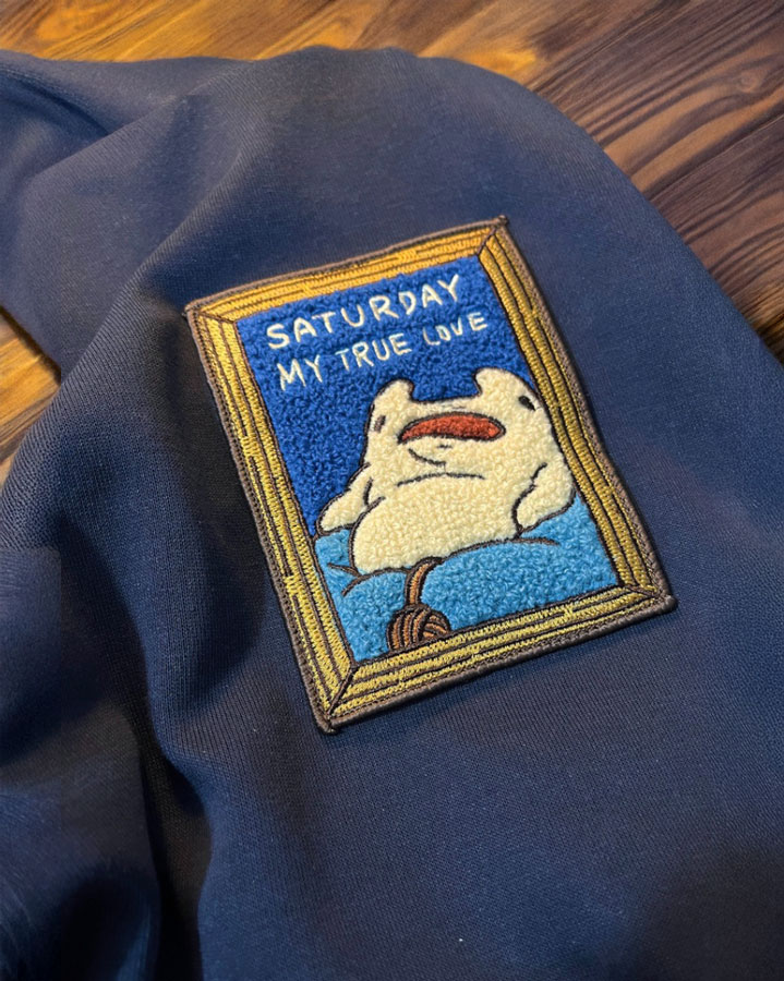 深藍款的相框肥宅魟是毛巾繡的設計,